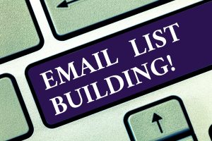 Text sign showing Email List Building. Conceptual photo allows distribution of information analysisy Internet users Keyboard key Intention to create computer message pressing keypad idea.